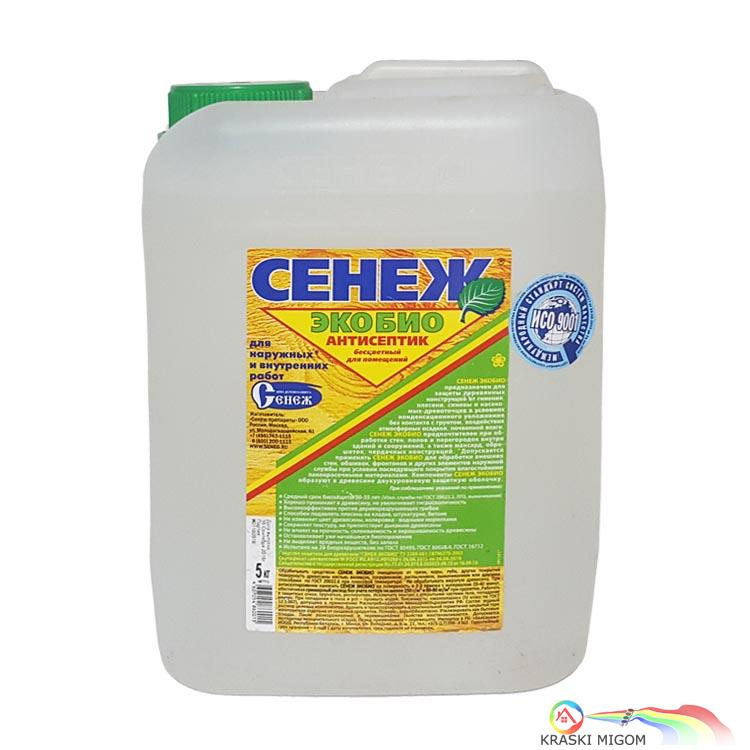 Антисептик СЕНЕЖ ЭКОБИО предназначен для защиты древесины от гниения, плесени, синевы и насекомых-древоточцев внутри помещений и на открытом воздухе (под навесом) в условиях гигроскопического и конденсационного увлажнения без контакта с грунтом, воздействия атмосферных осадков, почвенной влаги самостоятельно или в качестве биозащитной грунтовки под ЛКМ. Допускается применять «СЕНЕЖ ЭКОБИО» для защиты элементов наружной службы, подверженных атмосферным осадкам, при последующем покрытии влагостойким лакокрасочным материалом.