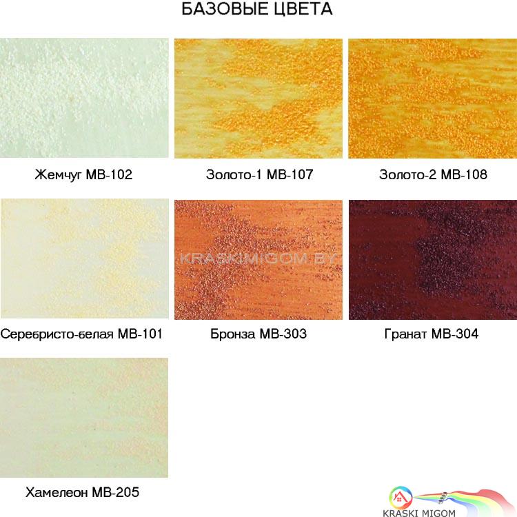 - выпускается 7 базовых цветов: серебристо-белая, жемчуг, золото I, золото II, бронза, гранат, хамелеон;
